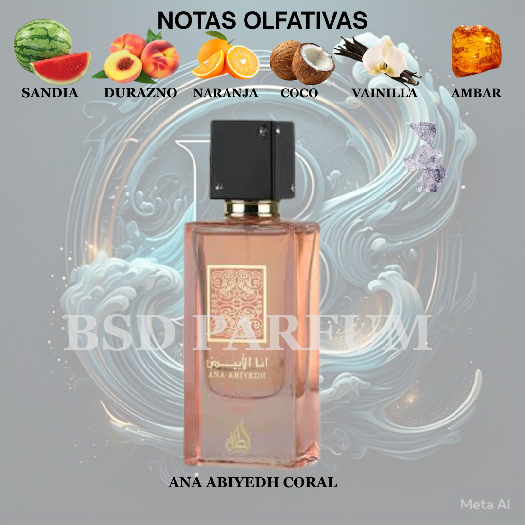 Descubre Ana Abiyedh Coral de Lattafa. Una fragancia vibrante con notas de frutas exóticas y almizcle. Frescura ideal para el verano. ¡Compra original aquí!